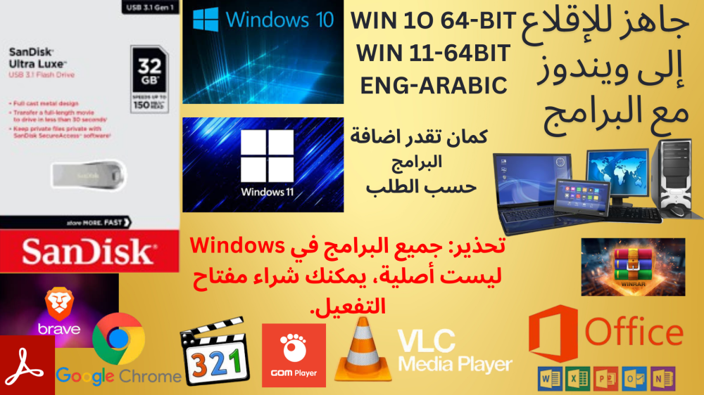 فلاشة USB قابلة للإقلاع جاهزة للاستخدام تتيح لك تثبيت Windows 10 أو Windows 11 بسهولة، بالإضافة إلى البرامج الأساسية مثل Microsoft Word ومشغل وسائط (مثل VLC أو Windows Media Player). تضمن هذه الفلاشة تجربة تثبيت سلسة من خلال توفير نظام التشغيل والبرامج المهمة في جهاز واحد.