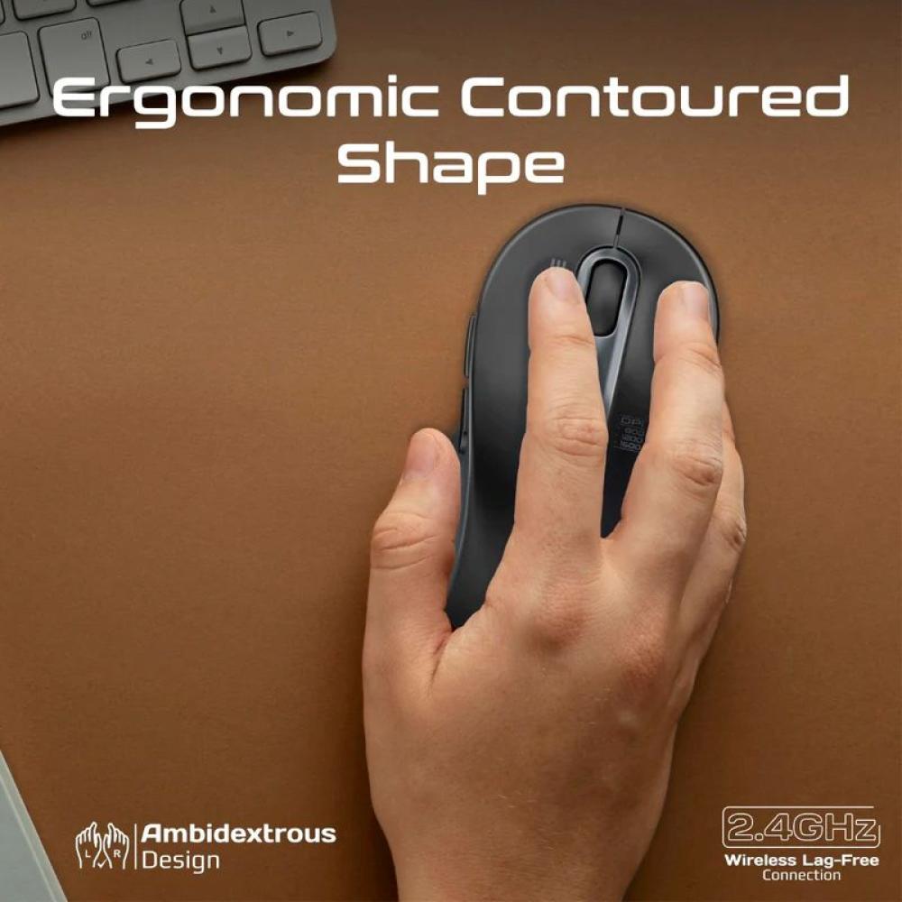 ماوس لاسلكي متعدد الوظائف مع خيارات اتصال عبر Bluetooth وReceiver Plug، يوفر تجربة استخدام مريحة ودقيقة بفضل مستشعر بصري قابل للتعديل يصل إلى 1600 نقطة في البوصة. يقلل من إجهاد المعصم ويوفر حتى 150 ساعة من وقت العمل.